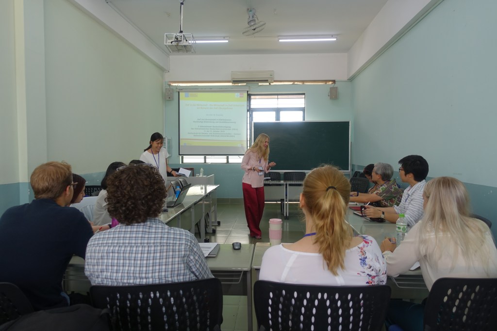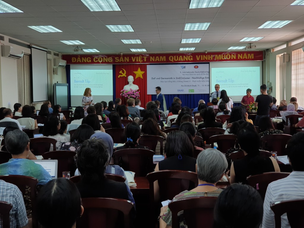 Vom 11. bis zum 13. Oktober 2019 fand abermals die internationale Fachtagung des Vietnamesischen Deutschlehrerverbandes (VDVL) statt. Dieses Jahr bestand drei Tage lang die Möglichkeit zum Thema DaF und Germanistik in Süd(ost)asien – Nachhaltige Entwicklung und Qualitätssicherung zahlreichen Referierenden zuzuhören und ebenso aktiv an Workshops oder Sitzungen zu partizipieren. Ausgetragen wurde die Tagung von der Hochschule für Geistes- und Sozialwissenschaften der Nationaluniversität Ho-Chi-Minh-Stadt unter Unterstützung des Deutschen Akademischen Austauschdienstes (DAAD), des Goethe-Instituts Hanoi, des VDLV und des österreichischen Bundesministeriums für Bildung, Wissenschaft und Forschung.